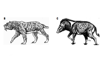 El final del Pleistoceno Tardío fue una época caracterizada Epor los intensos periodos glaciares y la presencia de grandes mamíferos herbívoros, como los mamutes (Mammuthus spp.), mastodontes (Cuvieronius) y perezosos gigantes (Eremotherium, Megatherium, Paramylodon), y superdepredadores, como el oso cara corta (Arctodus simus), el tigre dientes de sable (Smilodon spp.) y el león americano (Panthera atrox).